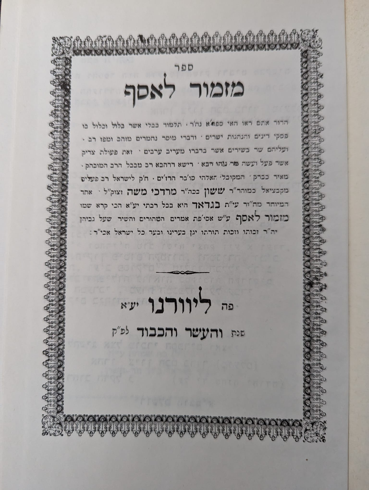 Sefer Mizmor LeAssaf by Hacham Sasson ben Mordechai Shanduch ספר מזמור לאסף לששון בן מרדכי