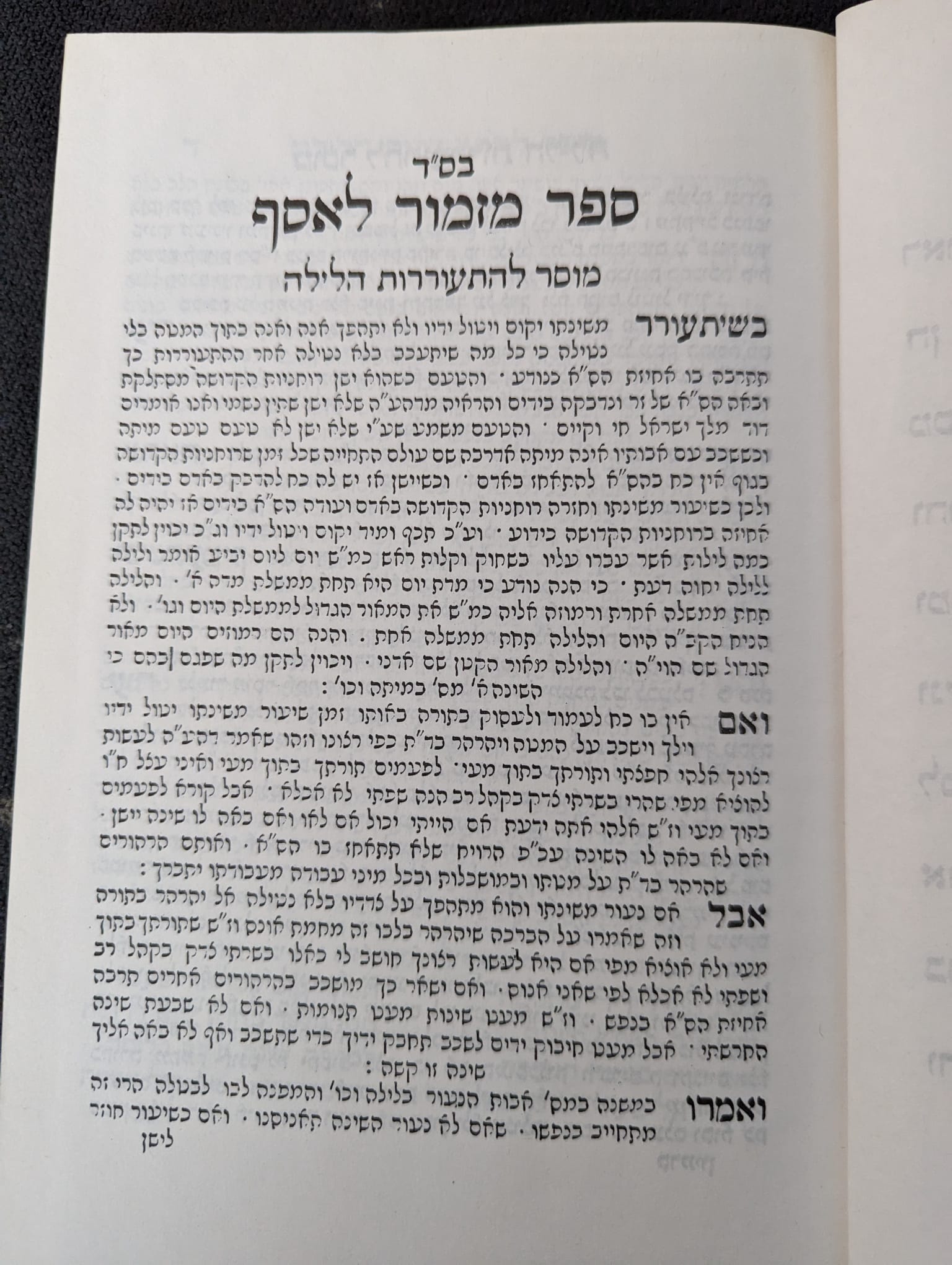 Mizmor LeAssaf – laws on prayer, sermons, and piyuttim, and mussar